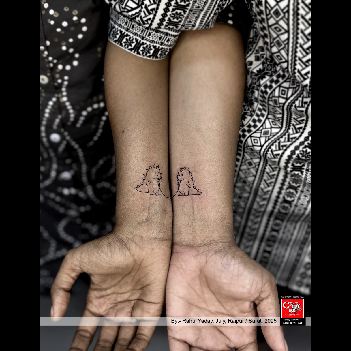 MATCHING DINO LOVE๐ฆ๐ A CUTE AND MINIMAL COUPLE TATTOO SYMBOLIZING ENDLESS BOND