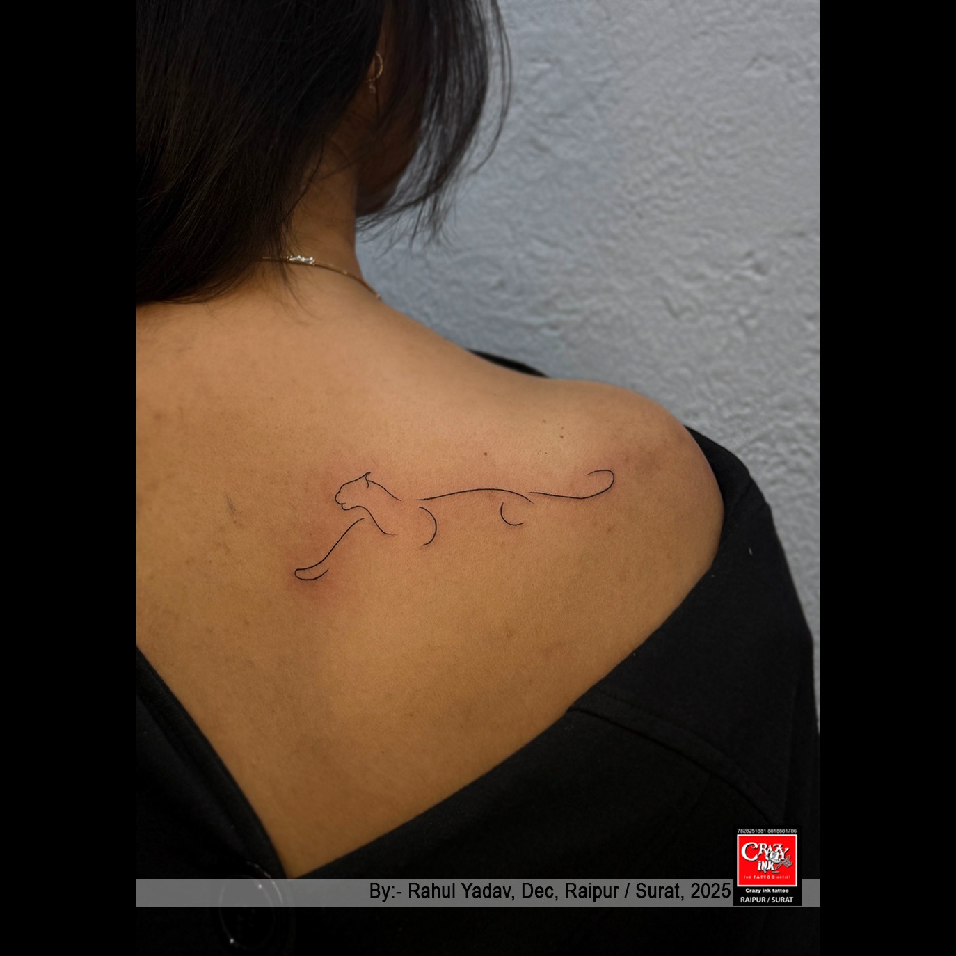 Placed beautifully across the upper back/shoulder area, the elongated design follows the natural curve of the body, enhancing the overall flow and making the tattoo look subtle yet striking. Panther tattoos often represent power, courage, protection, and independence, making them a meaningful choice for those who carry a strong and fearless personality.