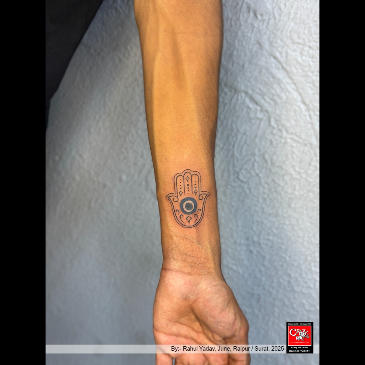 The clean linework and minimalistic detailing make this tattoo timeless and meaningful, while its deep symbolism connects to spirituality and personal energy. At Crazy Ink Tattoo & Piercing (Raipur / Surat), we create tattoos that are more than just designs – they’re personal amulets, memories, and art pieces that last a lifetime.